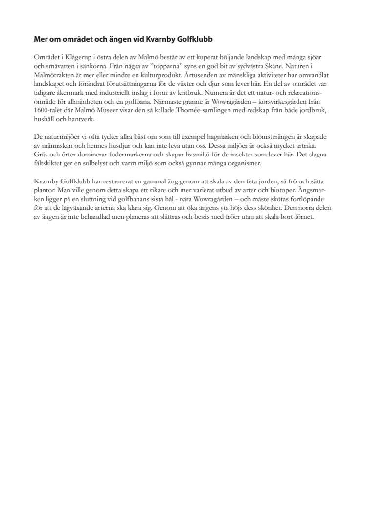 Den 2 augusti arrangeras Ängens dag på Wowragården och Kvarnby Golfklubb i Södra Sallerup utanför Malmö. Dokumentet innehåller kompletterande information om området samt ängen vid Kvarnby Golfklubb.