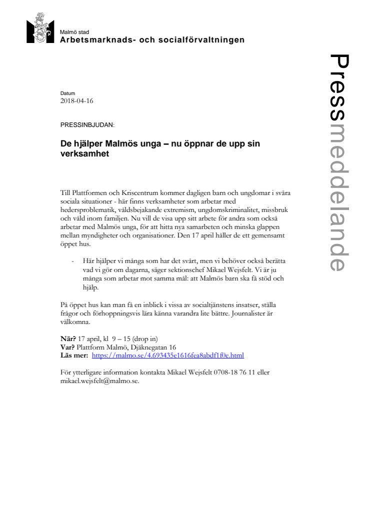 Till Plattformen och Kriscentrum kommer dagligen barn och ungdomar i svåra sociala situationer. Nu vill de visa upp sitt arbete för andra som också arbetar med Malmös unga, för att hitta nya samarbeten och minska glappen mellan myndigheter och organisationer. Den 17 april håller de ett gemensamt öppet hus.