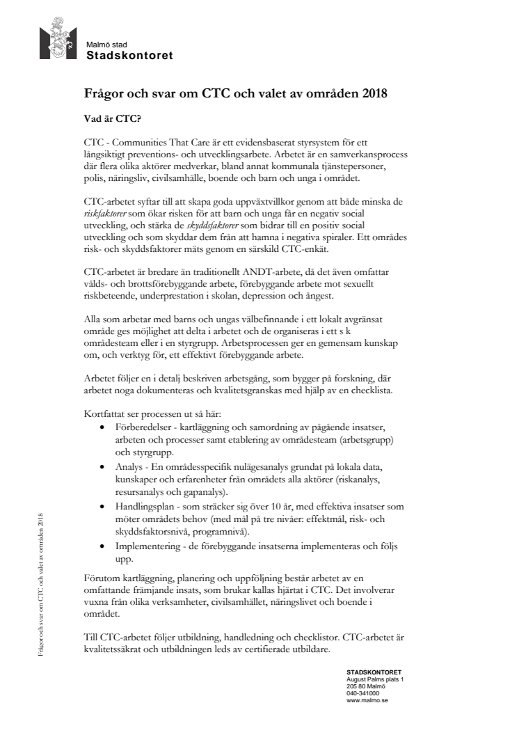 Frågor och svar om CTC och val av områden 2018