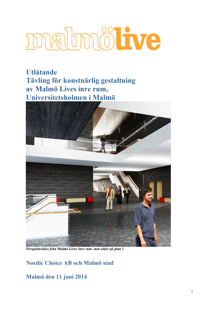Nordic Choice och Malmö stad har arrangerat en tävling om den konstnärliga gestaltningen av Malmö Lives inre rum. I det här utlåtandet presenteras och beskrivs de två vinnande förslagen.