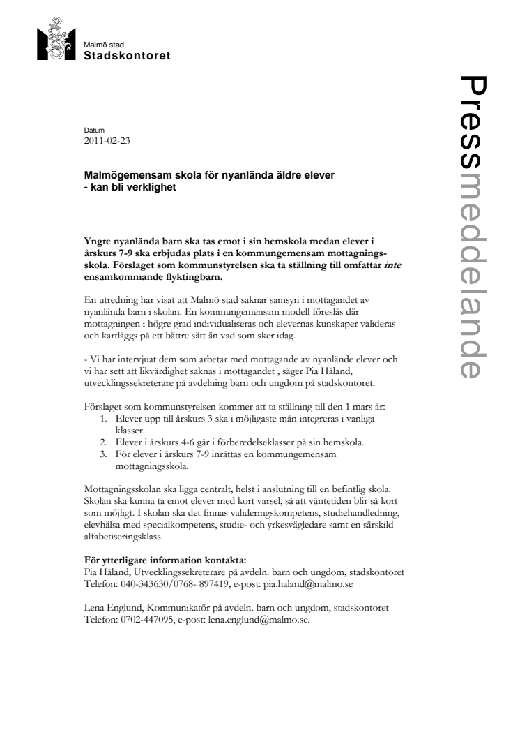 Malmögemensam skola för nyanlända äldre elever kan bli verklighet
