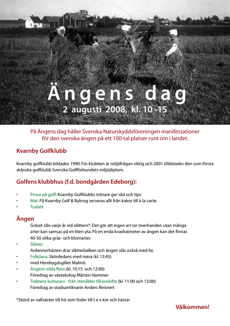 Program för Ängens dag på Wowragården och Kvarnby Golfklubb i Södra Sallerup utanför Malmö.
