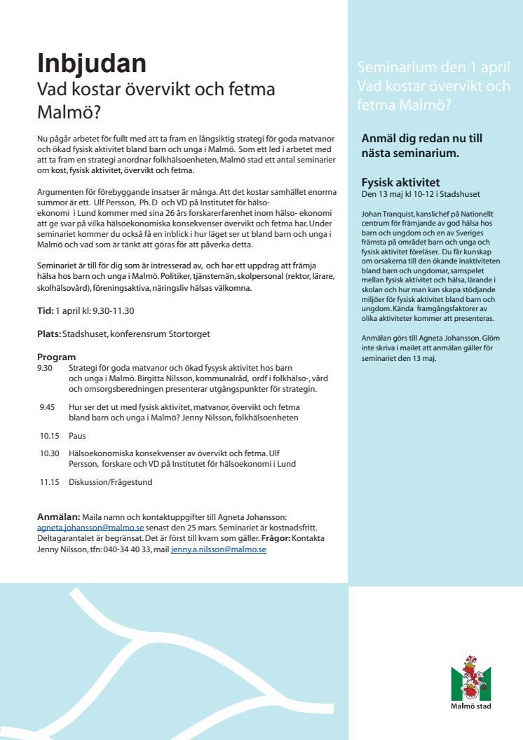 Seminarium - Vad kostar övervikt och fetma Malmö?