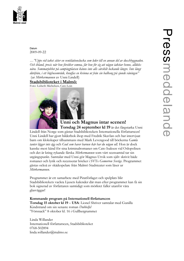 Stadsbiblioteket i Malmö: Unni och Magnus intar scenen! (OBS! Datum!)
