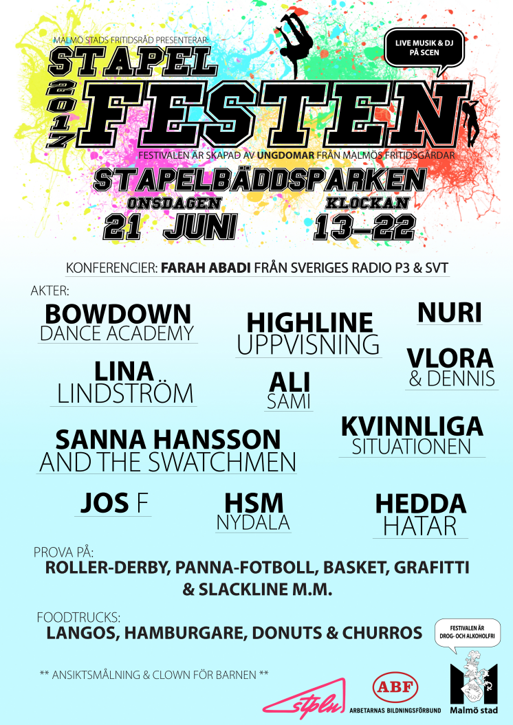 Onsdagen den 21 juni arrangeras Stapelfesten vid Stapelbäddsparken i Västra hamnen. Det kommer bli musik, dans, möjlighet att prova-på aktiviteter och mat från foodtrucks.