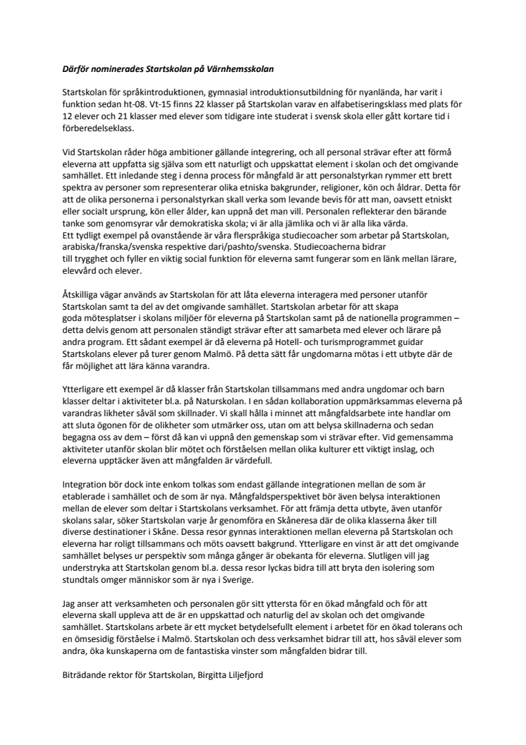 Startskolan för språkintroduktionen, gymnasial introduktionsutbildning för nyanlända, har varit i funktion sedan ht-08. Vt-15 finns 22 klasser på Startskolan