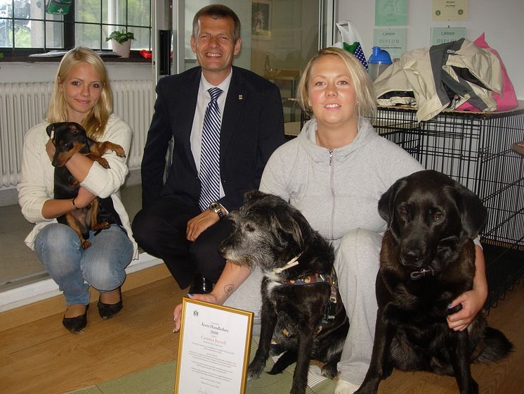 Catarina Buvrell, Ribersborgs Doghouse, är en engagerad och förstående handledare som väcker hopp. Hon är en pärla helt enkelt. Därför har hon tilldelats utmärkelsen Årets Handledare 2008. Bilden är tagen vid prisutdelningen den 11 juni och visar Cassandra Holm, praktikant, Matz Nilsson, utbildningsdirektör, och Catarina Buvrell.