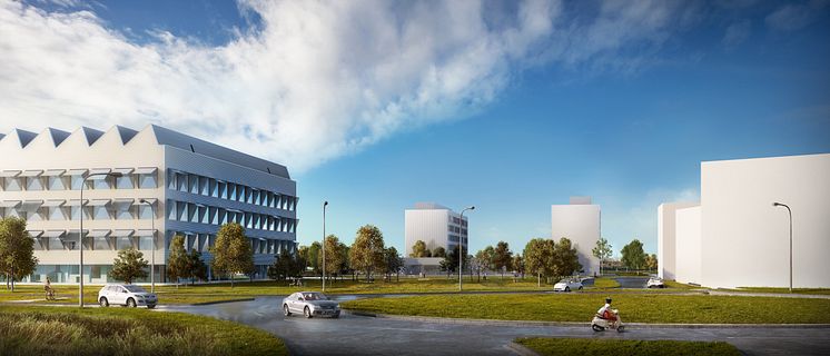 Vy från Pildammsvägen som illustrerar hur en andra etapp av hotellbyggnationen skulle kunna se ut. Illustration: Dorte Mandrup arkitekter