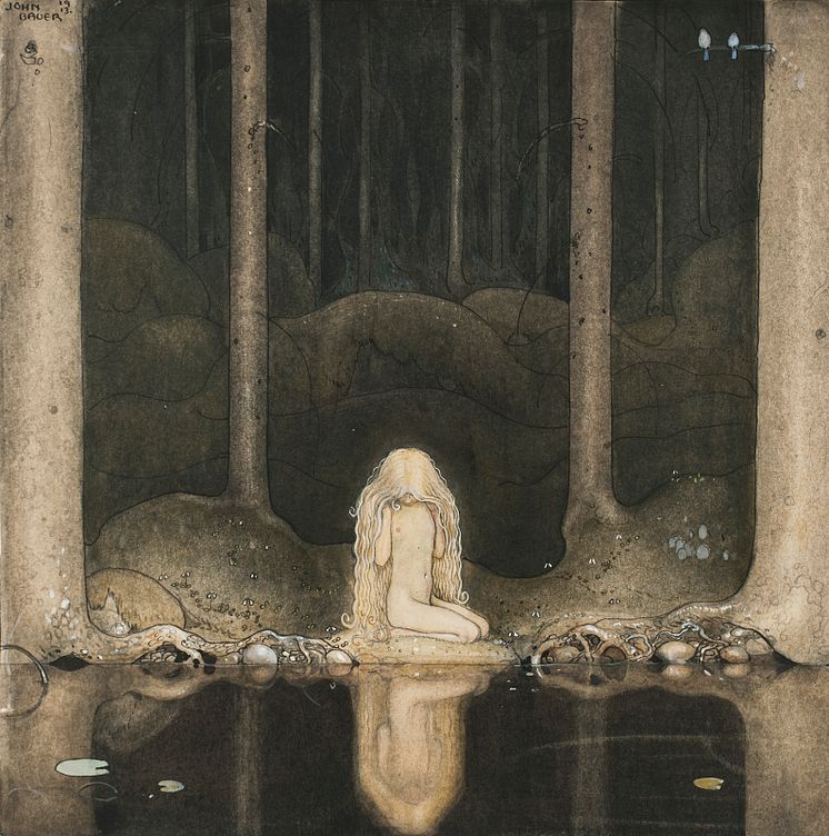 John Bauer, Ännu sitter Tuvstarr kvar och ser ner i vattnet, 1913.