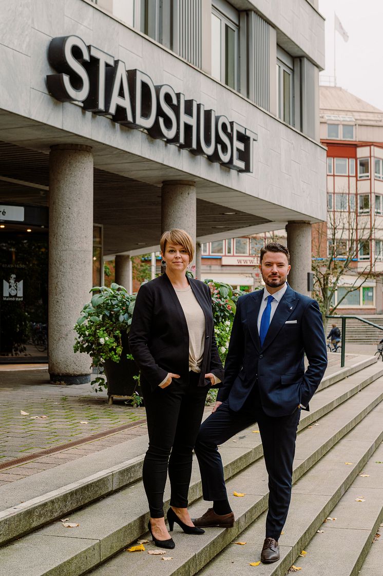 Kommunledningen med Katrin Stjernfeldt Jammeh (S), kommunstyrelsens ordförande, och Roko Kursar (L), kommunstyrelsens förste vice ordförande.
