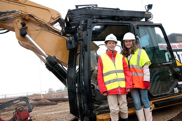 Ett första spadtag utan spade – men med grävmaskin. I den satt några av familjeföretagets yngsta förmågor: 14-åriga Olivia Nevsten och 12-åriga Victor Nevsten. Nu har Nevsten Fastighets AB påbörjat byggandet av sina hyresrätter söder om Hyllie Allé.