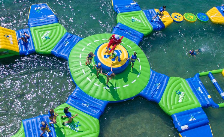 Under Urban Beach i Malmö kommer vattenhinderbanan Wibit att läggas ut i havet vid T-bryggan den 6 juli. www.malmövidhavet.se