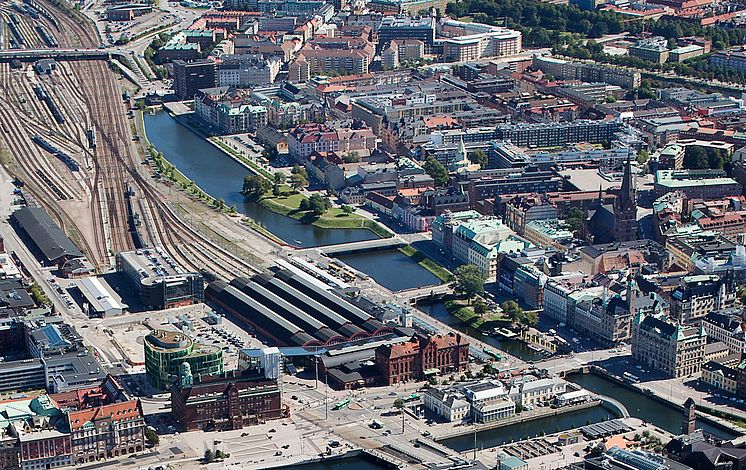 Vy över centrala Malmö med kvarteret S:t Gertrud