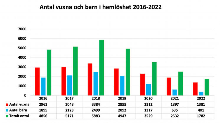 Antalet hemlösa personer i Malmö fortsätter att minska. Allra mest minskar den strukturella hemlösheten, men även den sociala hemlösheten minskar. Barn i hemlösa hushåll har minskat med 37 procent.