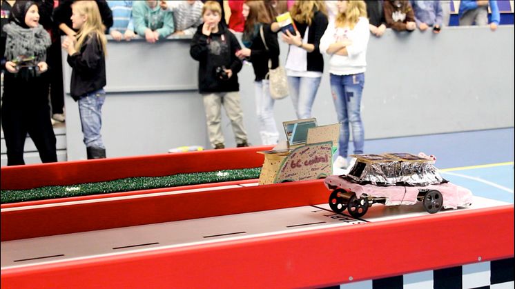 Solracet är en tävling för barn i 6:e klass där 96 klasser bygger egna solcellsbilar och tävlar i lag om den stora vinsten - 15 000 kronor.