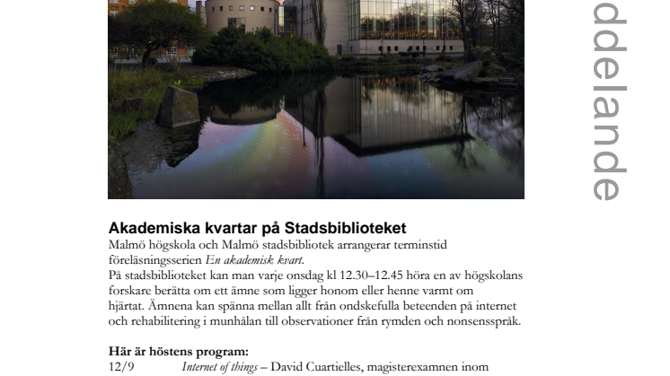 Akademiska kvartar på Stadsbiblioteket i Malmö i höst