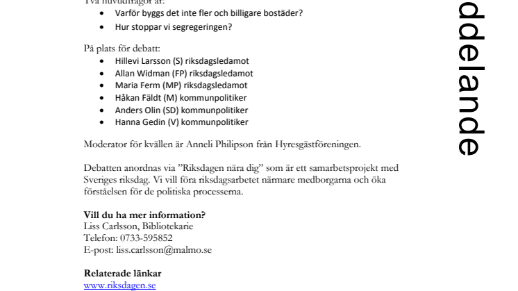 Debatt på Stadsbiblioteket i Malmö: Varför byggs det inte fler och billigare bostäder?