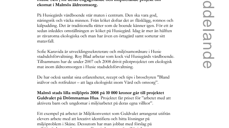Ekomat för äldre får Malmö stads miljöpris 2008