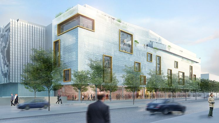 Projektnamnet Isblocket är valt för att beskriva byggnadens yttre gestaltning som samspelar med P husets fasad och volym. En kylig, glasad monolit vars former knäcker och bildar ett sammanhållet uttryck för de båda husen. Byggstarten för kontorshuset beräknas ske i september med ett färdigställande vid årsskiftet 2015/2016.