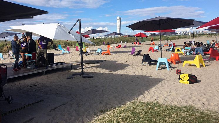 "Hänget" är platsen på Ribban för unga att träffas på och prova aktiviteter. Nu och fram till att Malmöfestivalen börjar finns här mycket att göra och allt är gratis. Hänget finns vid stora beachplanen vid T-bryggan på Ribersborg.
