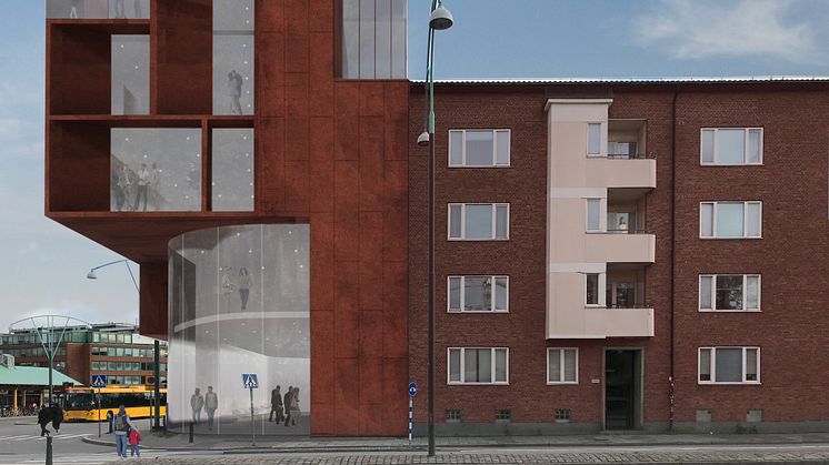 Mångsidig byggnad ger liv och rörelse åt klassisk knutpunkt