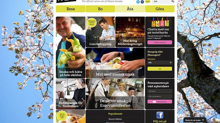 Eurovision Song Contest har skapat en enorm ökning av det internationella medieintresset för Malmö, något som även märks på turistbyråerna och hotellen. Malmö har helt enkelt fått en unik chans att profilera sig som turistmål. Den chansen vill Malmö Turism ta vara på med en ny, fräsch och lättnavigerad version av Malmös officiella turisthemsida, Malmotown.com. Siten innehåller allt en turist kan tänkas behöva – här finns information, inspiration och massor av härliga bilder på Malmö. Bland annat kan besökaren få tips om på vad man kan hitta på med familjen, vilka lunchrestauranger som passar bra på shoppingrundan, och naturligtvis hur man bäst upplever Eurovisionfebern i Malmö.