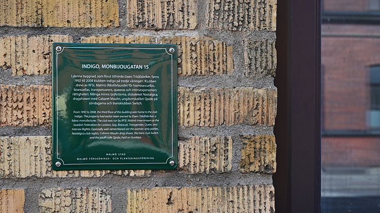 Under maj sätts nio nya minnesskyltar upp i Malmö. Syftet med skyltarna är att väcka nyfikenhet för stadens historia genom att belysa byggnader, personer och händelser. Två av de nya skyltarna markerar historiskt betydande HBTQIA+ platser genom att uppmärksamma klubbarna Tintomara och Indigo. I samband med uppförandet av minnesskylten för klubb Indigo hålls det en avtäckningsceremoni den 17 maj.