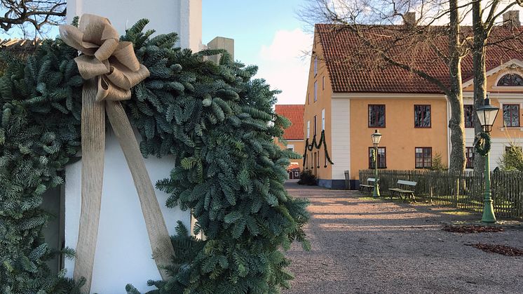 Inne i den röda och vita huvudbyggnaden finns möjlighet att äta julgröt, klenäter och annat gott under kristallkronorna, se den grannaste granen i stan och njuta av blommande juldekorationer i alla rum och salar. Servering även i det juldekorerade växthuset.