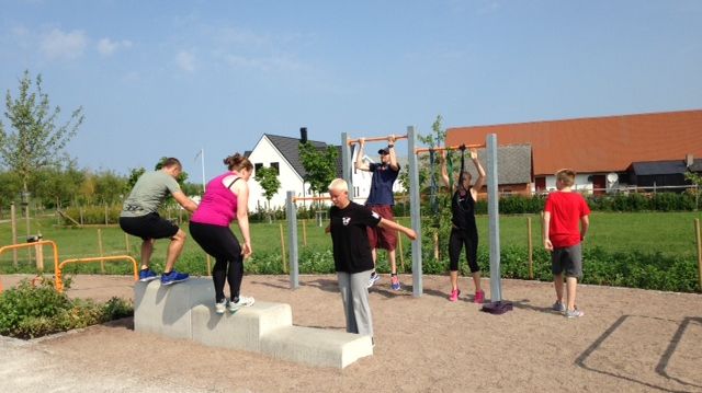 På det nya utegymmet blir det ett träningspass med tränare. På utegymmet finns något för alla, både otränade, som vill börja träna, och de som tränat länge. Tränaren hjälper till att hitta rätt nivå.