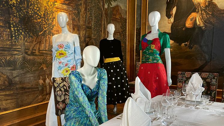I slottets paradvåning visas aftonklänningar från skånska slott och från bland andra prinsessan Christina, fru Magnuson. Klänningarna som visas är festmode från 1890-talet till sena 2010-talet.