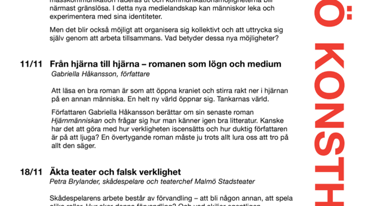 Ny föreläsningsserie på Malmö Konsthall onsdagskvällar kl. 19 i november