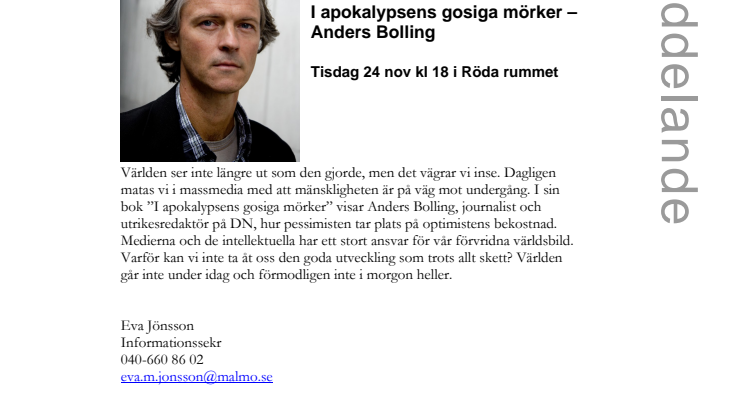Stadsbiblioteket i Malmö:I apokalypsens gosiga mörker – Anders Bolling