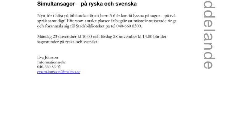 Stadsbiblioteket i Malmö: Simultansagor – på ryska och svenska