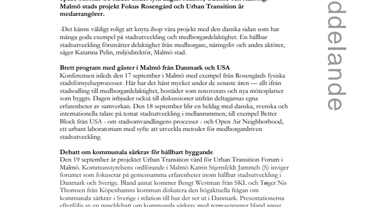 - Det känns väldigt roligt att knyta ihop våra projekt med den danska sidan som har många goda exempel på stadsutveckling och medborgardelaktighet. En hållbar stadsutveckling förutsätter delaktighet från medborgare, näringsliv och andra aktörer, säger Katarina Pelin, miljödirektör, Malmö stad.