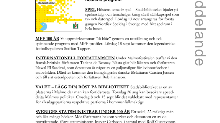Speldagar, författarbesök, MFF-jubileum, Sveriges statsministrar…ett axplock av höstens program