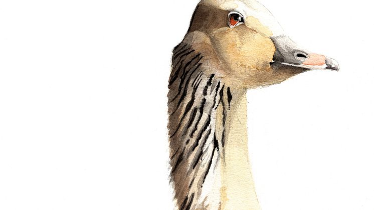 Gåsen på bilden är av arten Spetsbergsgås, och är målad av Roy Blad.