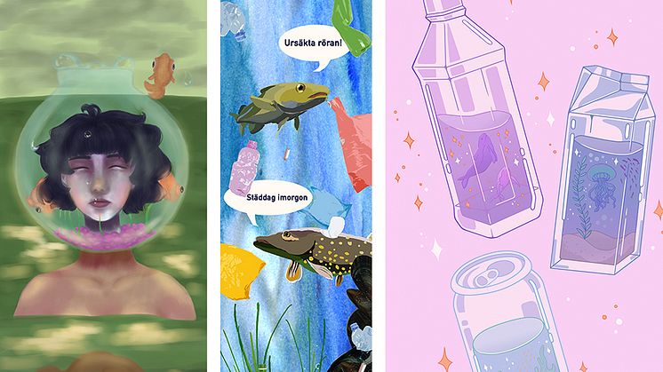 Elever som studerar Estetiska programmet Bild och formgivning på Malmö latinskola har i kurserna grafisk illustration och bild arbetat med tema Vatten. Det var efter ett besök på