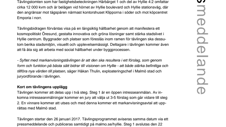 • Attraktiv tomt vid Hyllie station anvisas genom tävling