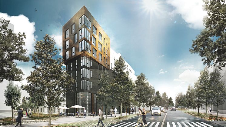Hyllie får ännu en spännande profilbyggnad i det strykjärnsformade Hyllie Corner, ritad av danska arkitektfirman Juul & Frost. I höstas köpte Midroc fastigheten Nanna 1 av Malmö stad för att bygga ett storkvarter med 115 lägenheter och 5 butiker i bottenplan. På onsdagen beviljade stadsbyggnadsnämnden bygglov.