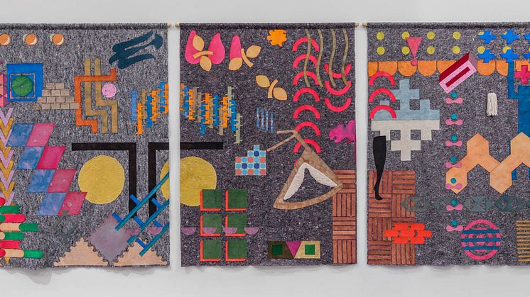 Installationsvy Textila Undertexter, Malmö Konstmuseum.