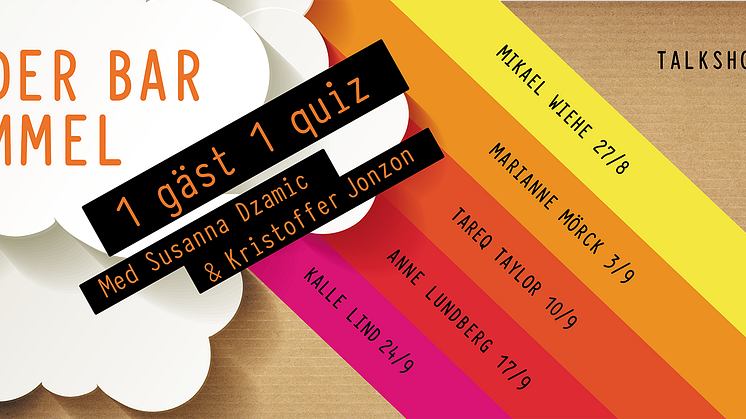 Titeln säger allt. Under bar himmel i Västra Hamnen möter Susanna Dzamic och Kristoffer Jonzon en gäst fem söndagskvällar framöver. Gästen intervjuas och publiken är med och tävlar i ett quiz som bygger löst på gästen. Vinnarlaget vinner hotellnätter och annat skoj och resten får förhoppningsvis en trevlig kväll, under bar himmel.