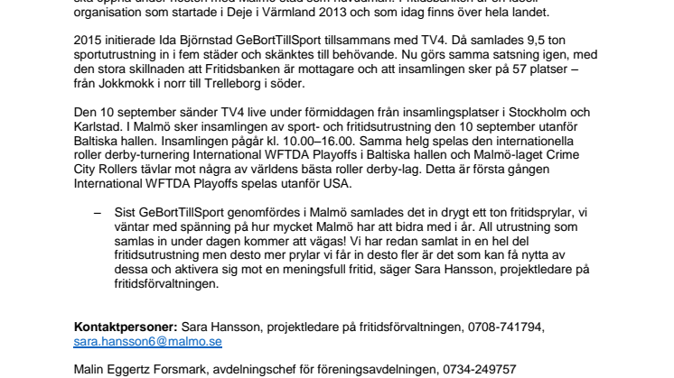 • Insamling till Fritidsbanken i Malmö under GeBortTillSport-dagen