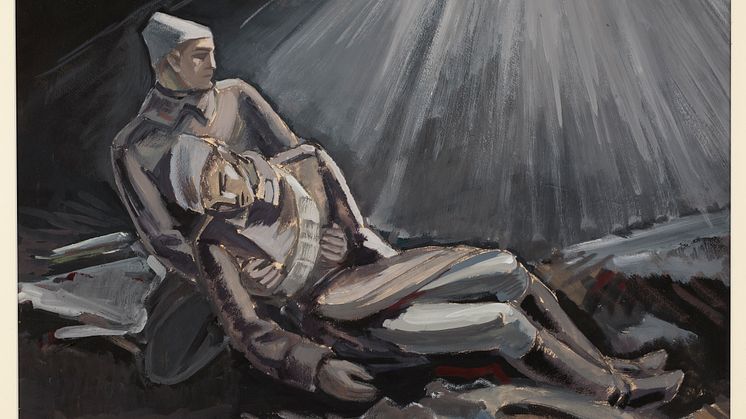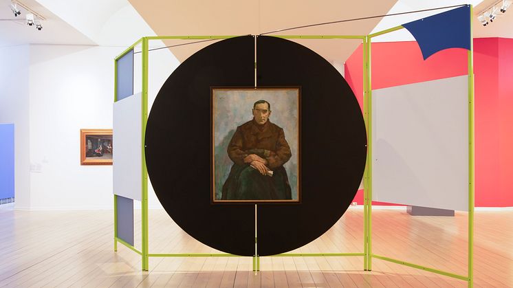 • Vy över Migration: Spår i en konstsamling. I förgrunden syns Lotte Lasersteins verk Der Emigrant (Dr. Walter Lindenthal) från 1941.