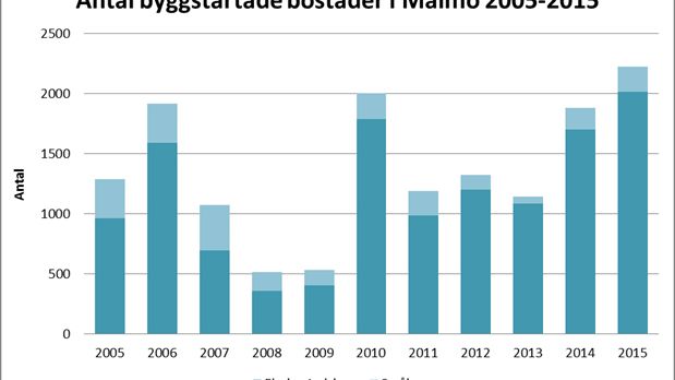 Antal byggstartade bostäder i Malmö 2005-2015