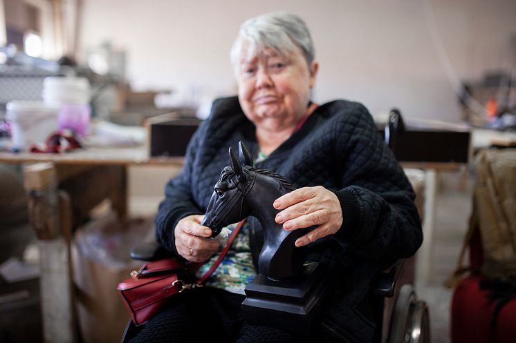 Marie-Louise Book med en prydnadshäst som hon ville gjuta in i det gemensamma verket.