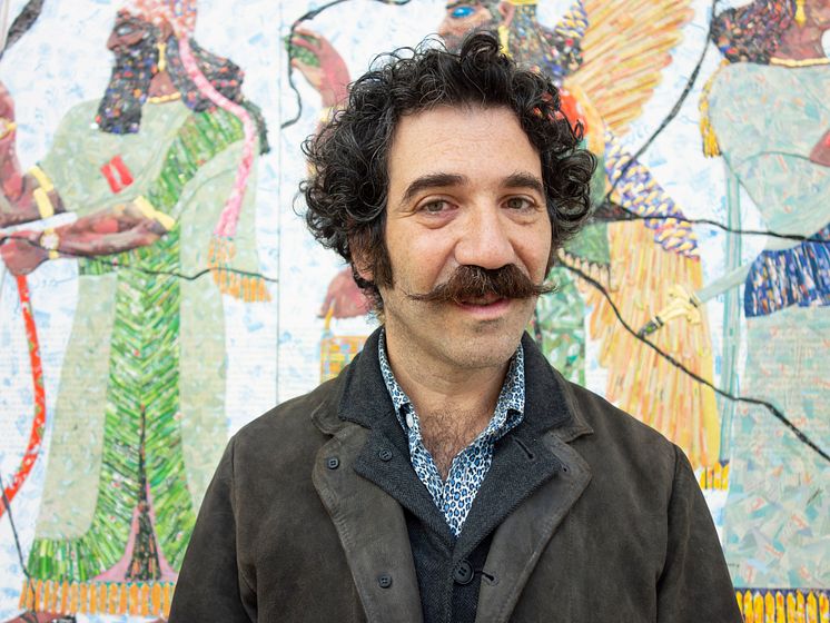 Michael Rakowitz i samband med utställningen The invisible enemy should not exist (Room G, Northwest Palace of Nimrud), 2019.