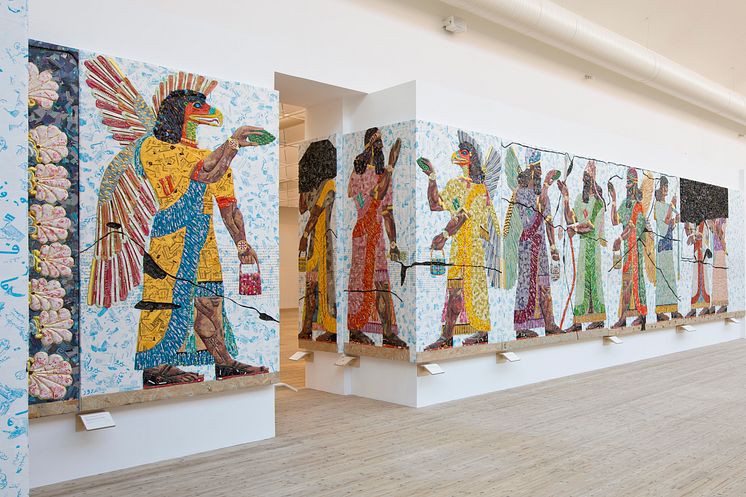 Michael Rakowitz. The invisible enemy should not exist (Room G, Northwest Palace of Nimrud), 2019. Installationsbild Malmö Konsthall 2019.