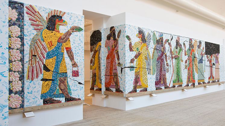 Michael Rakowitz. The invisible enemy should not exist (Room G, Northwest Palace of Nimrud), 2019. Installationsbild Malmö Konsthall 2019.