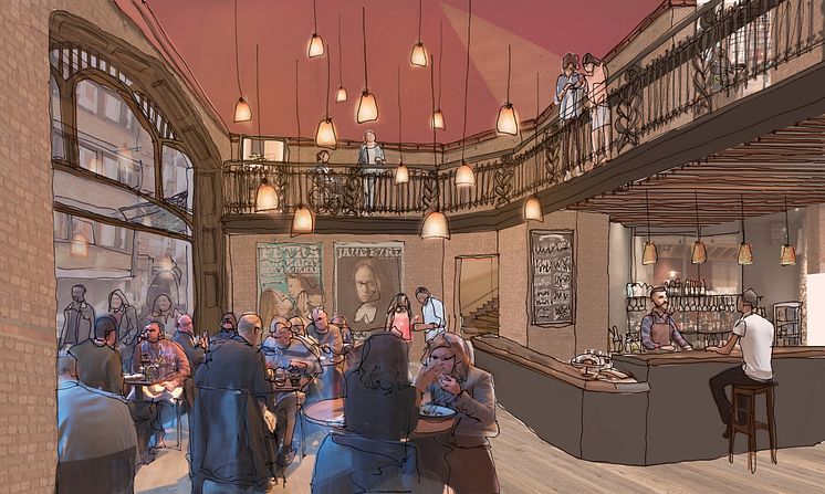 Cafe_Sketch concept view ground floor.Haworth Tompkins