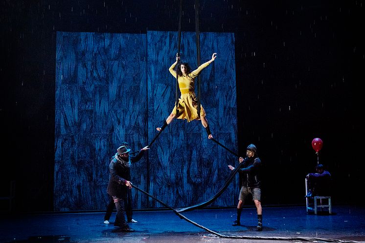 Movements – ett samarbete mellan Malmö Stadsteater och Cirkus Cirkör. På bilden i tyg: Ashtar Muallem.